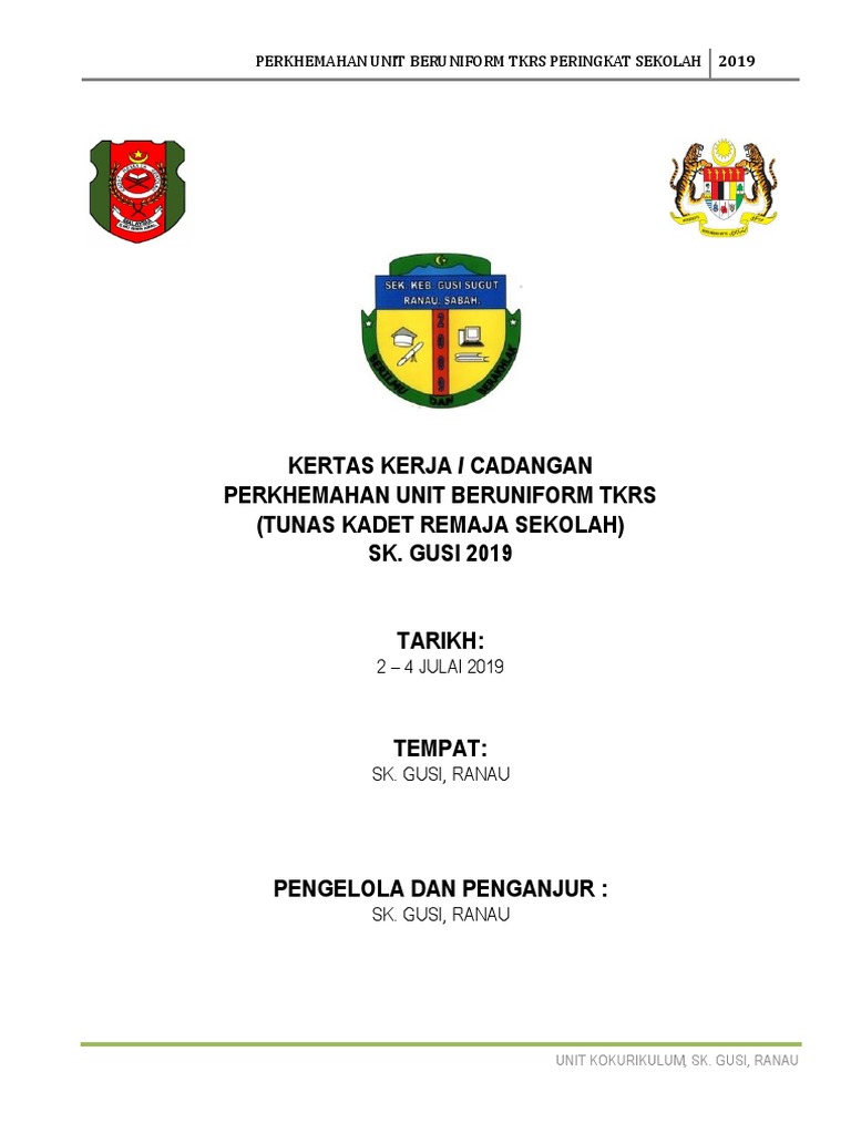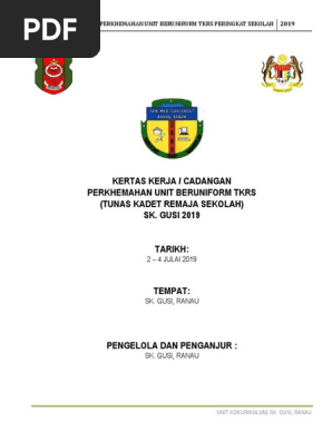 Kertas Kerja Perkhemahan Unit Beruniform Tkrs Sk Gusi 2019 Pdf